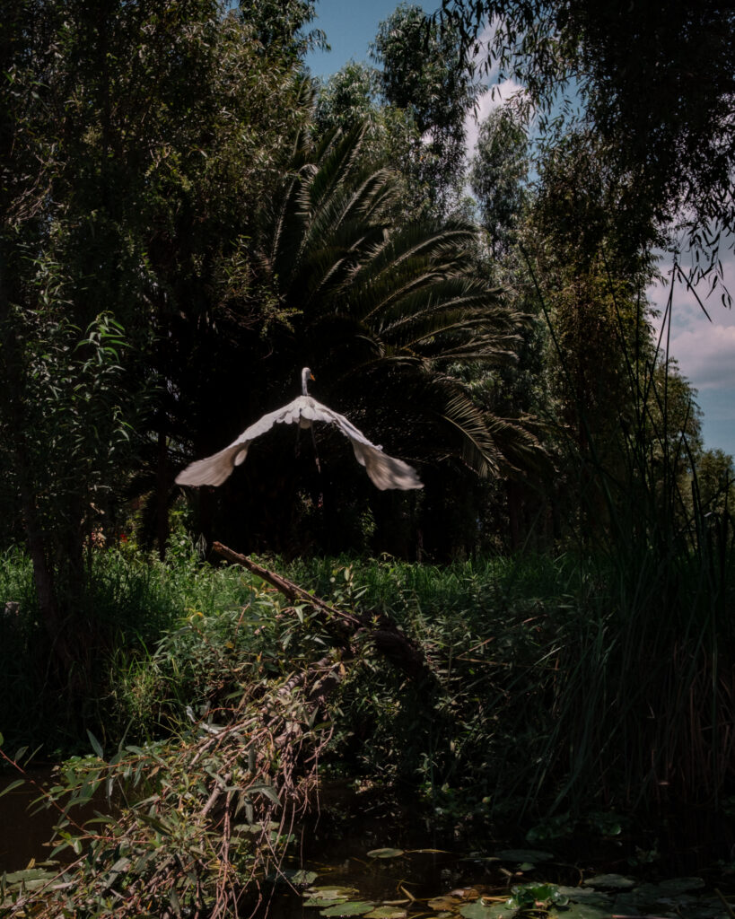 Efforts to restore the chinampas are often described in technical terms: dredging canals, replenishing soil, improving irrigation. Yet what once sustained them was not technique alone, but a worldview that treated the land as alive. Shrines still dot the waterways. A skeletal temazcal – a traditional Mexican steam bath – leans on a parcel managed by Arca Tierra, recalling ceremonies of healing. Even the birds carry meaning. Egrets, still common along the canals, were once tied to the Mexica homeland of Aztlán. Without the sense of reverence that bound people to soil and water, repair risks being too shallow for material, sustainable impact.