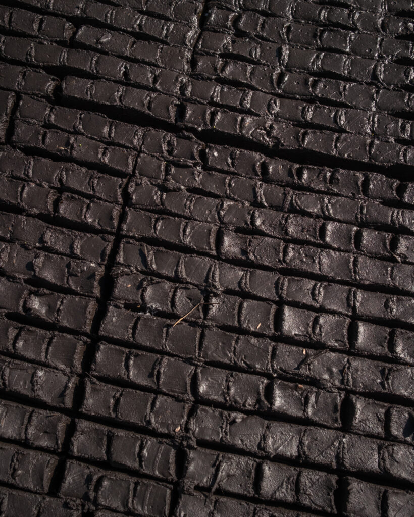 The grids of mud speak of this continuity. Each square holds a seed, each seed holds a possibility. When transplanted into the soil, the roots stay intact, the earth travels with them. It is a method both efficient and symbolic: renewal carried forward, soil and all.